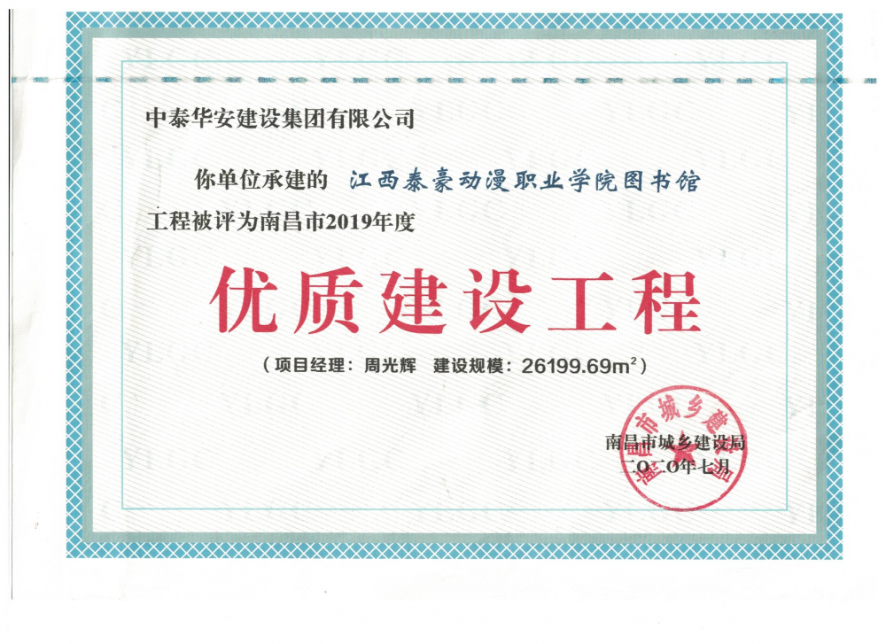 >南昌市2019年度优质建设工程