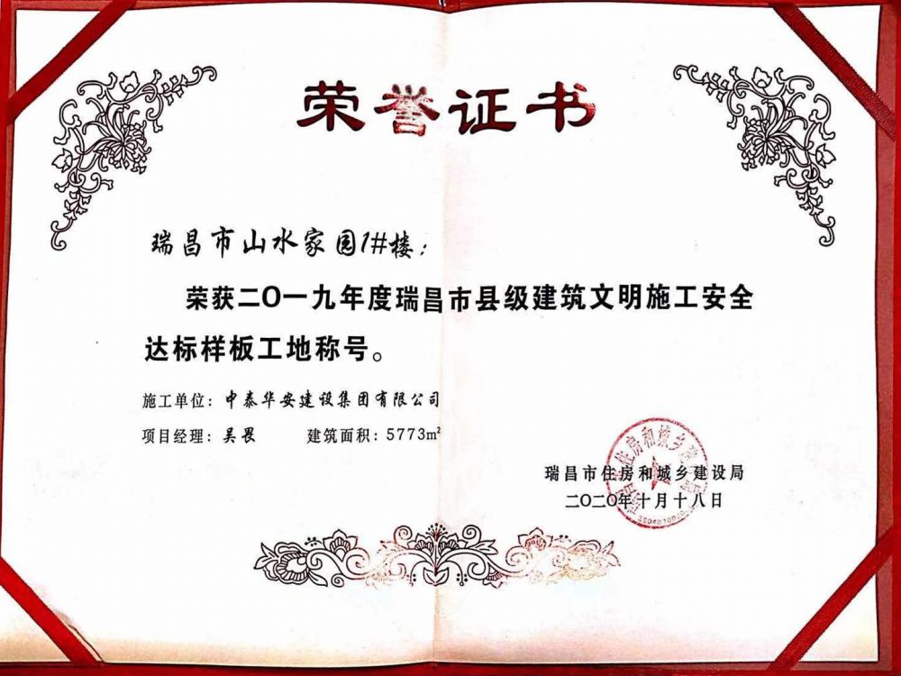 瑞昌市2019年度文明施工样板工地