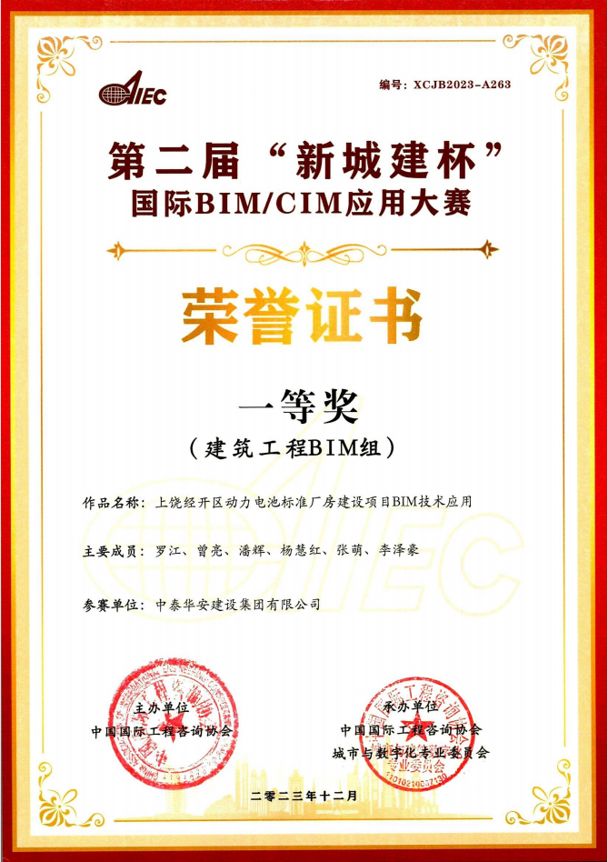 >第二届“新城建杯”国际BIM CIM应用大赛一等奖