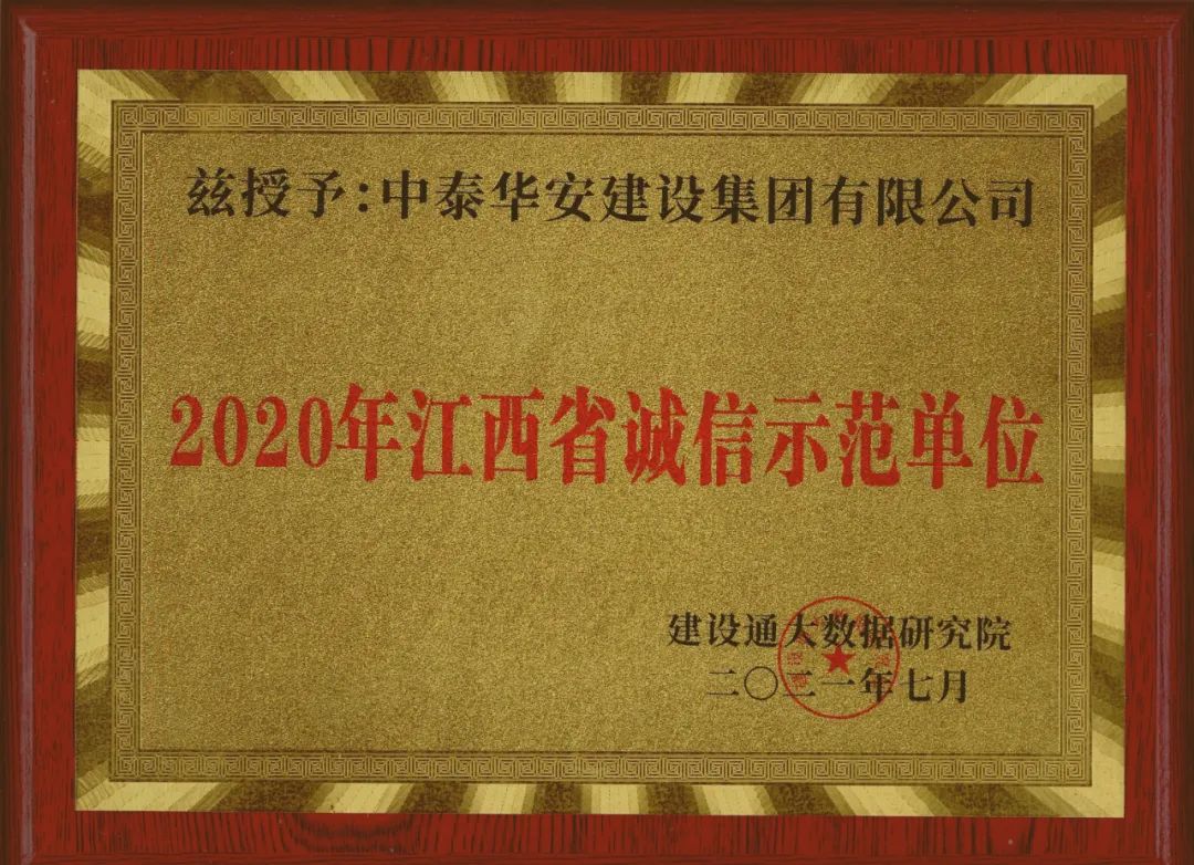 2021年7月29日-30日,建设通招投标精英班第六期在南昌召开,并给获评2020年度江西省诚信示范单位的企业颁发奖牌进行表彰。很荣幸,我司被建设通大数据研究院评为“2020年江西省诚信示范单位”。建设通是专业的建筑企业中标、不良、资质等级、建造师等信息数据查询平台,集聚了全国各省众多建筑企业的相关信息。