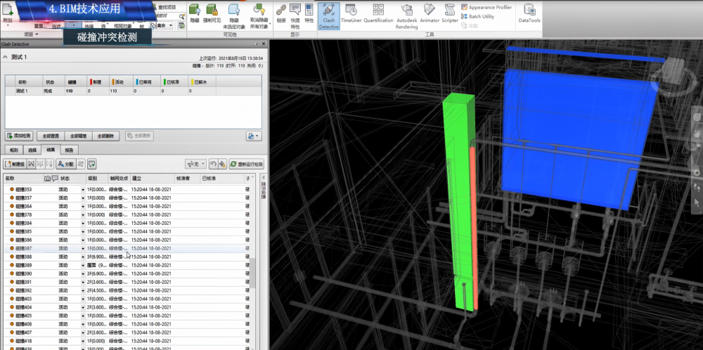 利用BIM软件进行各专业间碰撞检查,根据专业类型,设定冲突原则,从而有目的、有针对性的提前发现各专业间的碰撞问题,进而能够有效的提前解决,保证施工的时效性,减少返工和浪费。