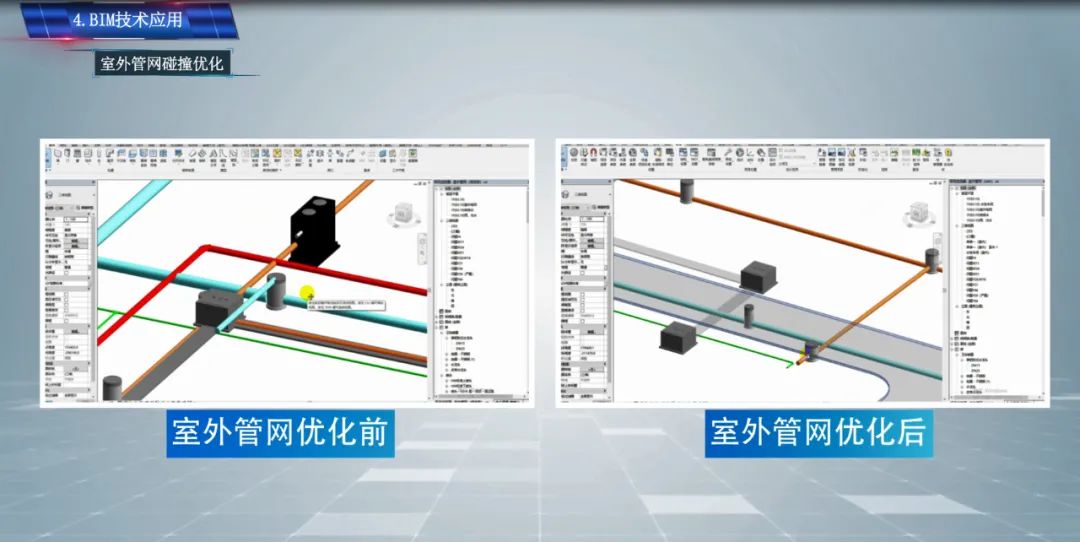本项目通过对BIM技术的应用,优化室外管网指导现场施工,发现图纸问题30余项,极大的提高了项目在成本管控和进度管理上的提升,为本项目优质竣工发挥了重要作用!未来我们还将引入更多新技术应用于项目实施过程中,致力于打造公司智能建造体系。